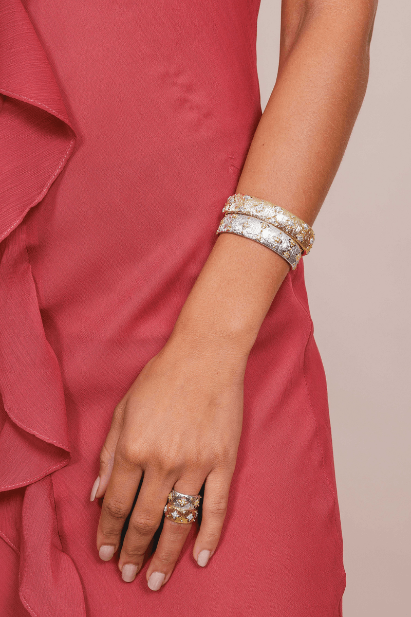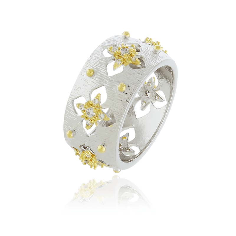 Anel Riscado Florzinhas Vazadas Cravejadas
