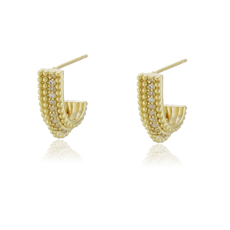 Argola Curvada Voltas Bolinhas Cravejada