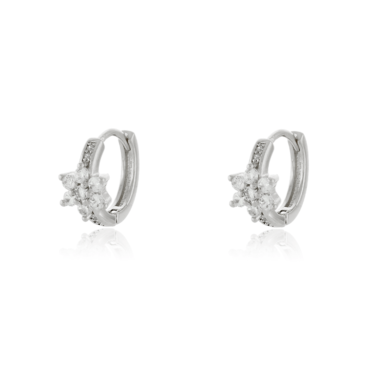 Argola Flor Pedras Círculos Metade Cravejada