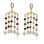 Argola Metade Cravejada Pedras Naturais Pérolas Penduradas