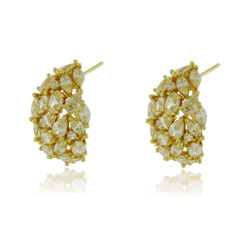 Argola Pedras Folhas Ovais Gotas Ponto de Luz