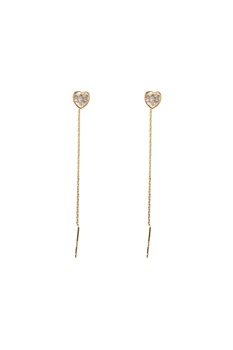 Brinco Anzol Pedra Coração Corrente