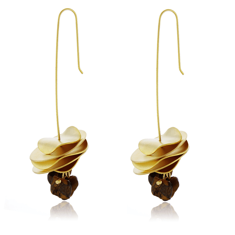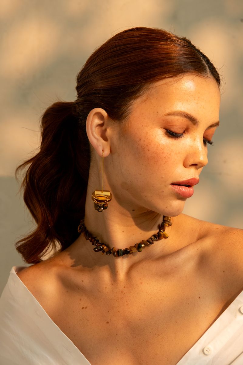 Brinco Anzol Placas Onduladas Cascalhos Olho de Tigre