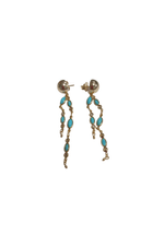 Brinco Círculo Alto Corrente Pedras Folhas Turquesas Ponto de Luz