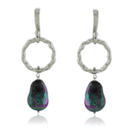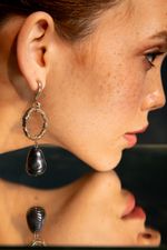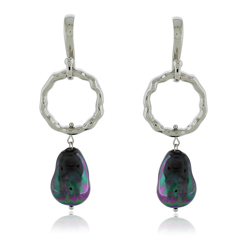Brinco Palito Círculo Vazado Trabalhado Pérola Black
