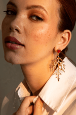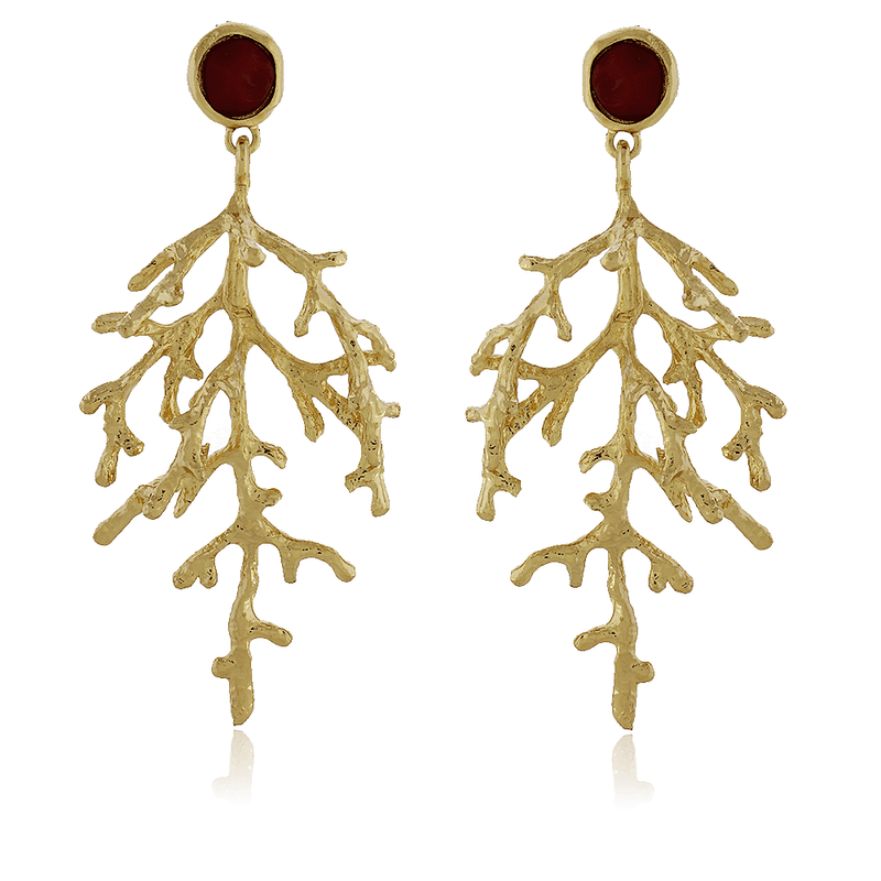 Brinco Pedra Círculo Galho Pendurado
