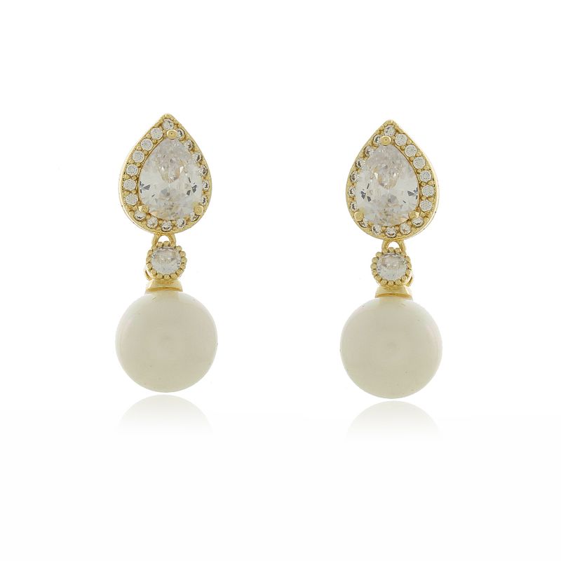 Brinco Pedra Gota Volta Cravejada Ponto de Luz Pérola