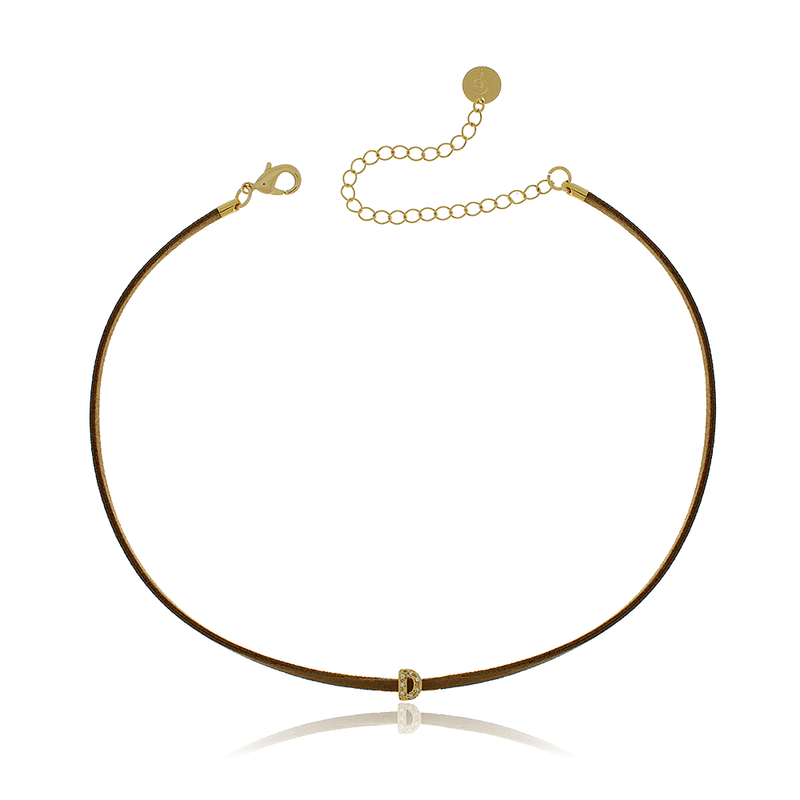 Choker Fio de Couro Letra Cravejada