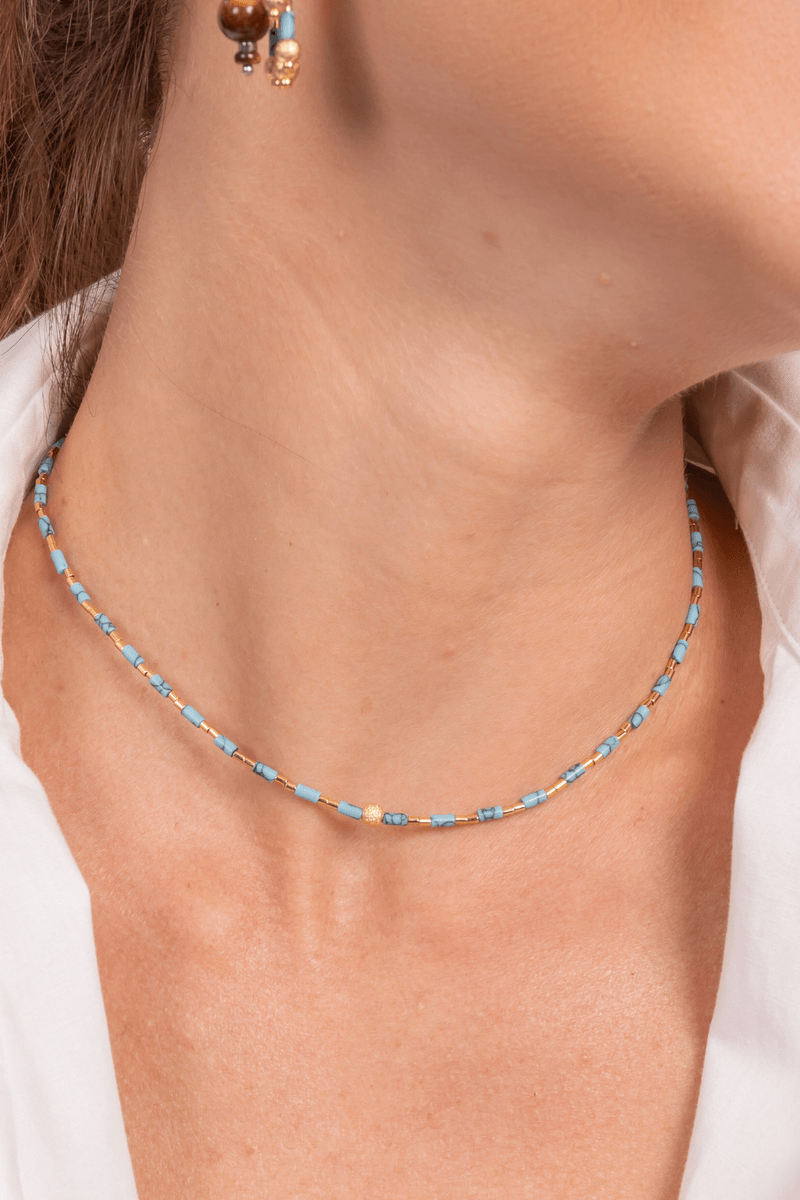 Colar Canutilhos Turquesa Lisos Bolinhas Brilhosas