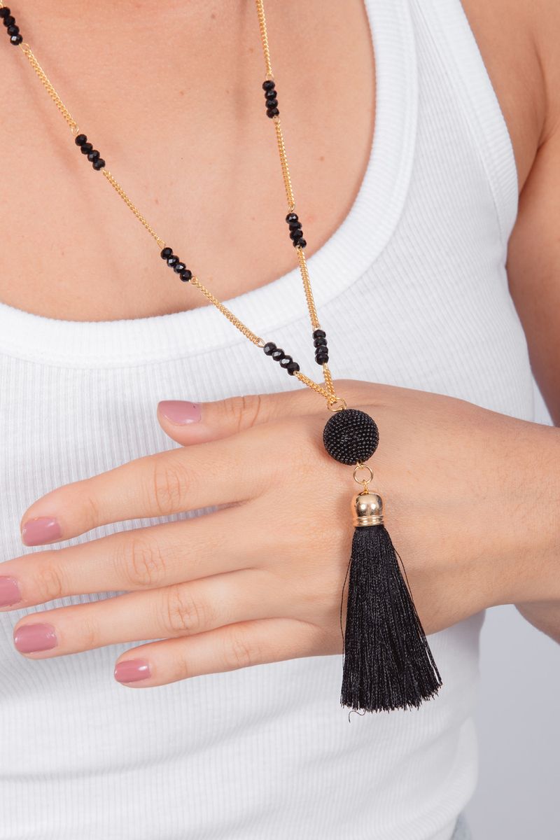 Colar Cristais Bola Trabalhada Tassel Franjas