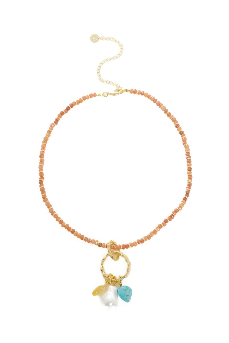 Colar Cristais Jade Círculo Trabalhado Pedra Citrino Turquesa Pérola