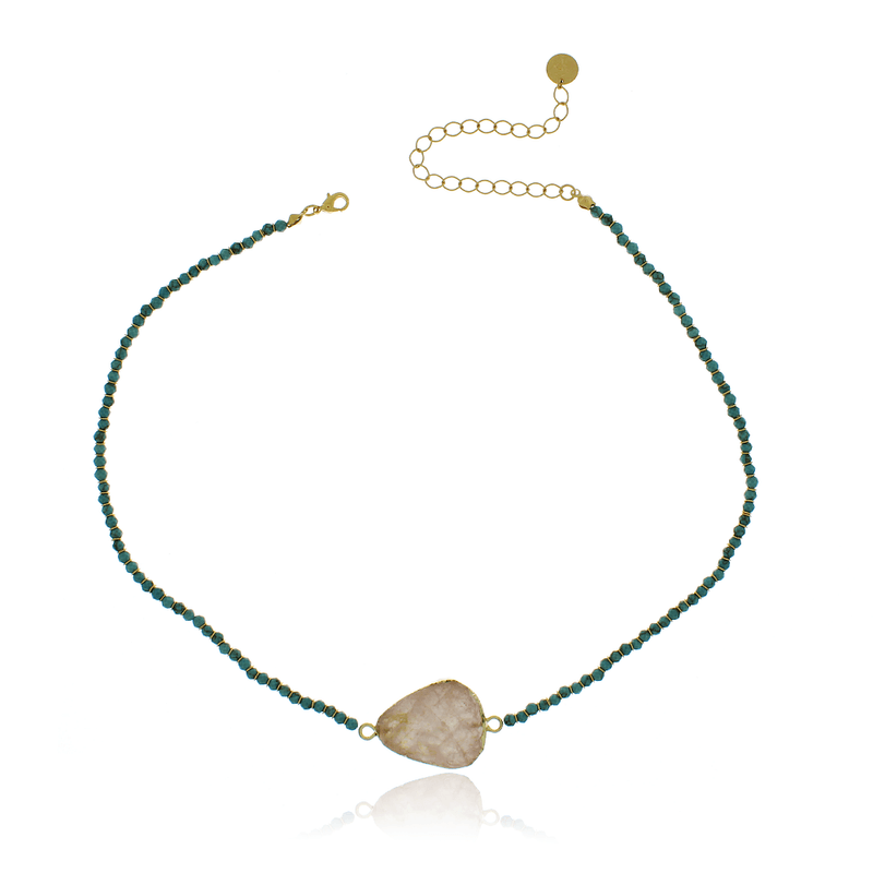 COLARESCOLARColar Cristais Turquesa Rondelas Pedra Natutal Volta Lisa