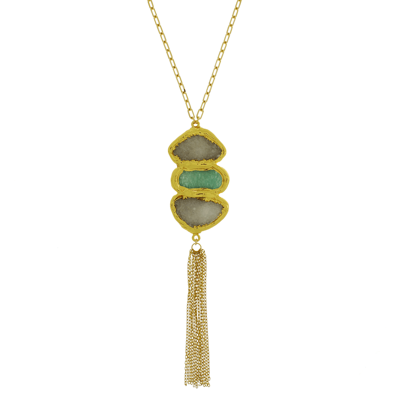 Colar Longo Carty Pedras Naturais Franja