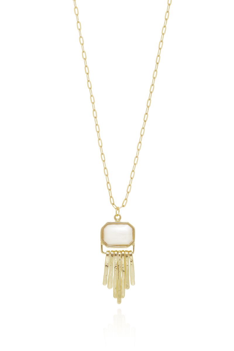 Colar Longo Carty Retângulo Pérola Franja Palitos
