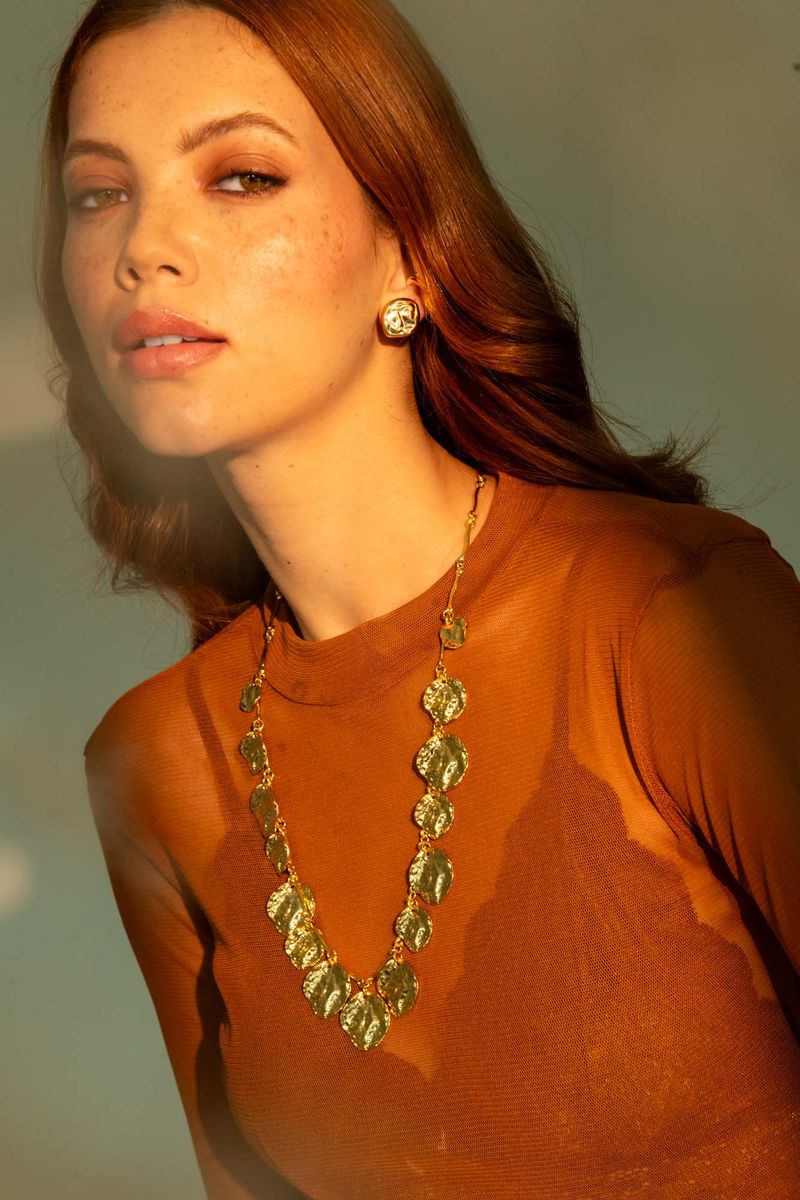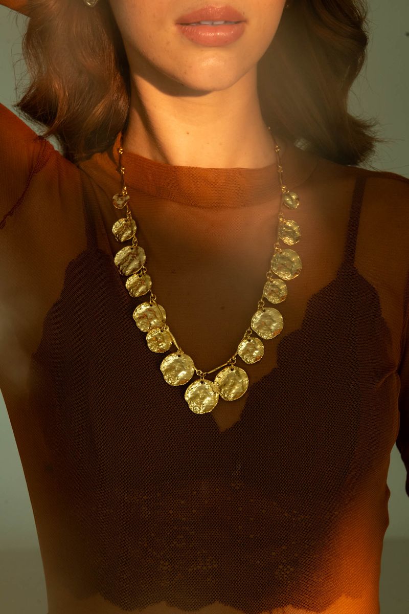COLARESCOLARColar Longo Círculos Martelados Palitos Ondulados