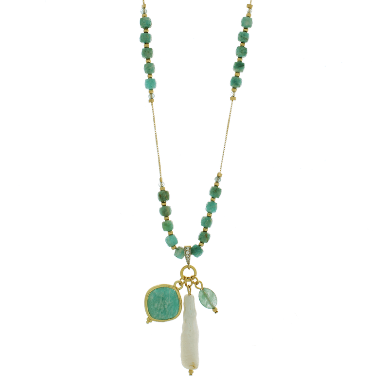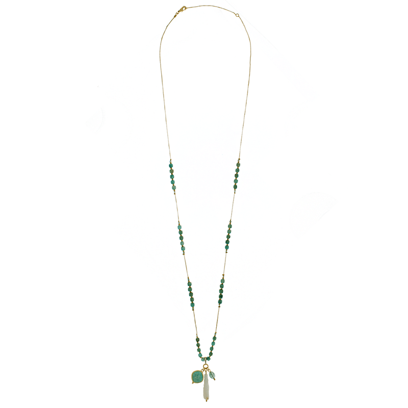 COLARESCOLAR LONGOColar Longo Cristais Apatita Pingentes Pedras Pérola