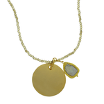 Colar Longo Cristais Placa Círculo Pingente Pérola