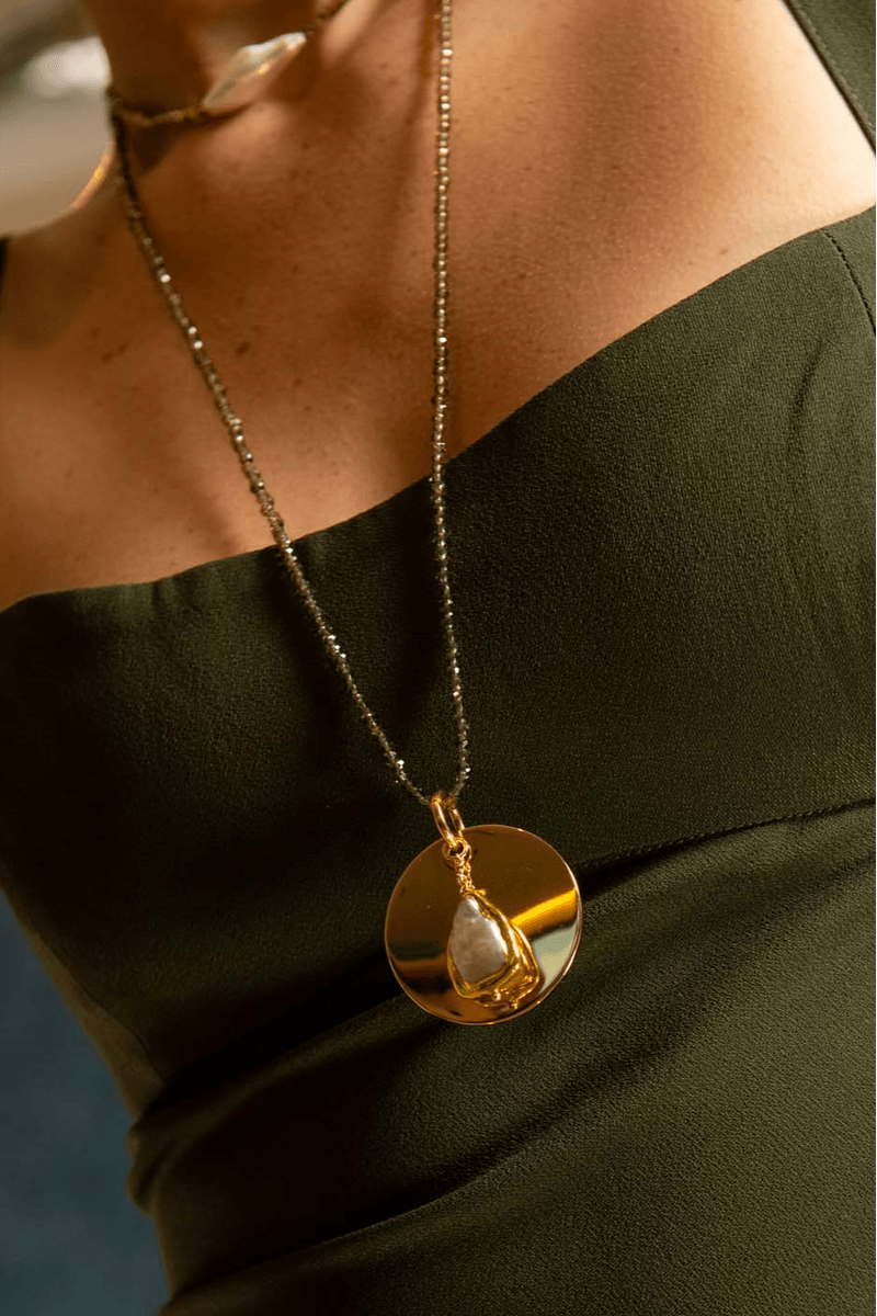 COLARESCOLAR LONGOColar Longo Cristais Placa Círculo Pingente Pérola