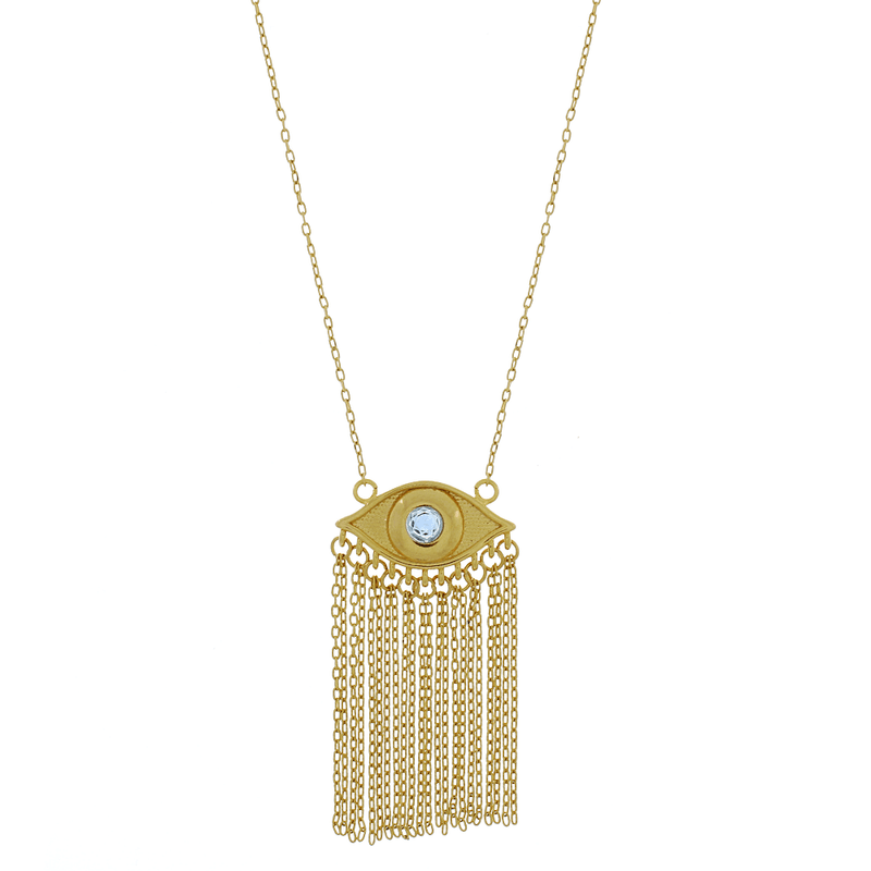 Colar Longo Olho Grego Cristal Correntes Penduradas