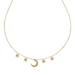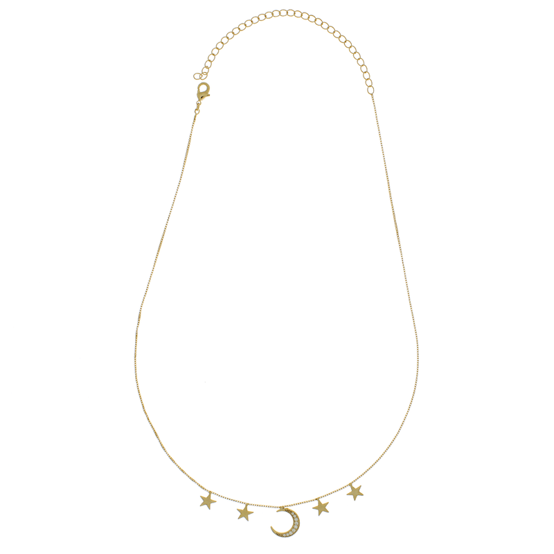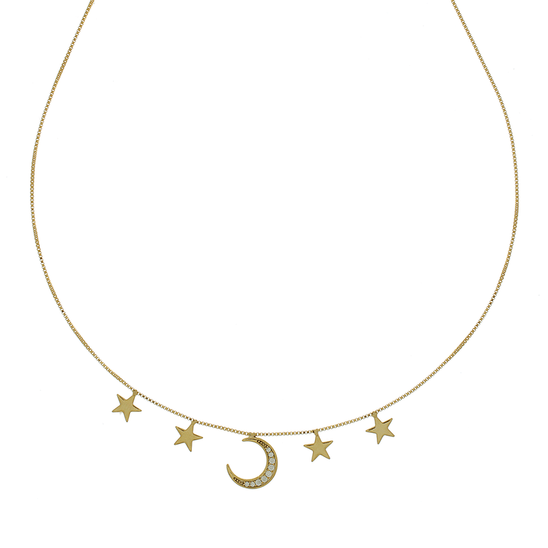 Colar Lua Cravejada Estrelas Lisas
