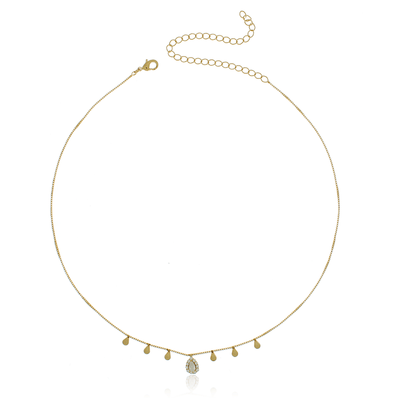 Colar Pedra Gota Volta Cravejada Gotinhas Lisas