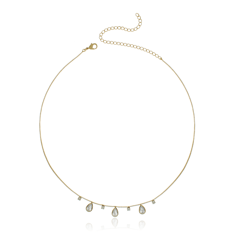 Colar Três Pedras Gotas Pontos de Luz