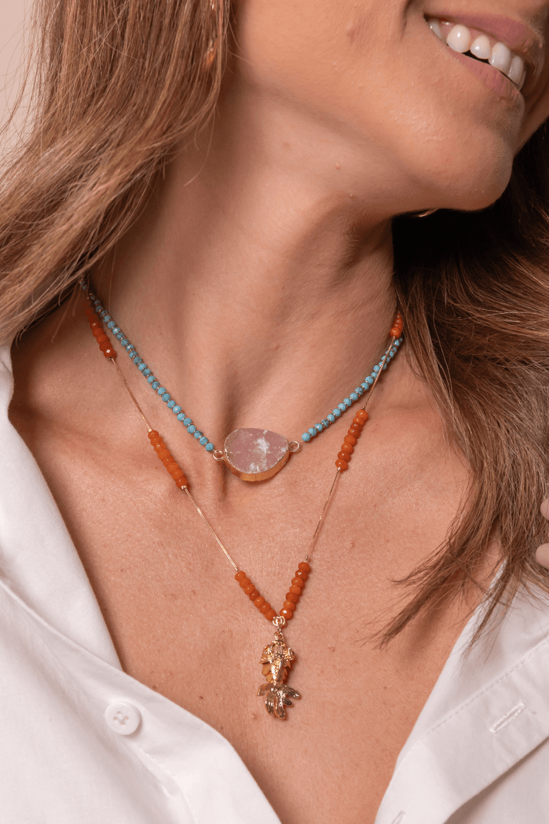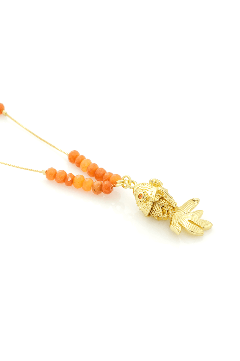 COLARESCOLARColar Veneziana Cristais Jade Laranja Peixe Trabalhado