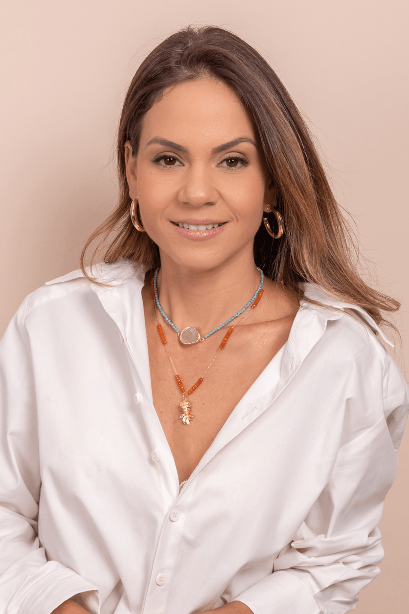 Colar Veneziana Cristais Jade Laranja Peixe Trabalhado