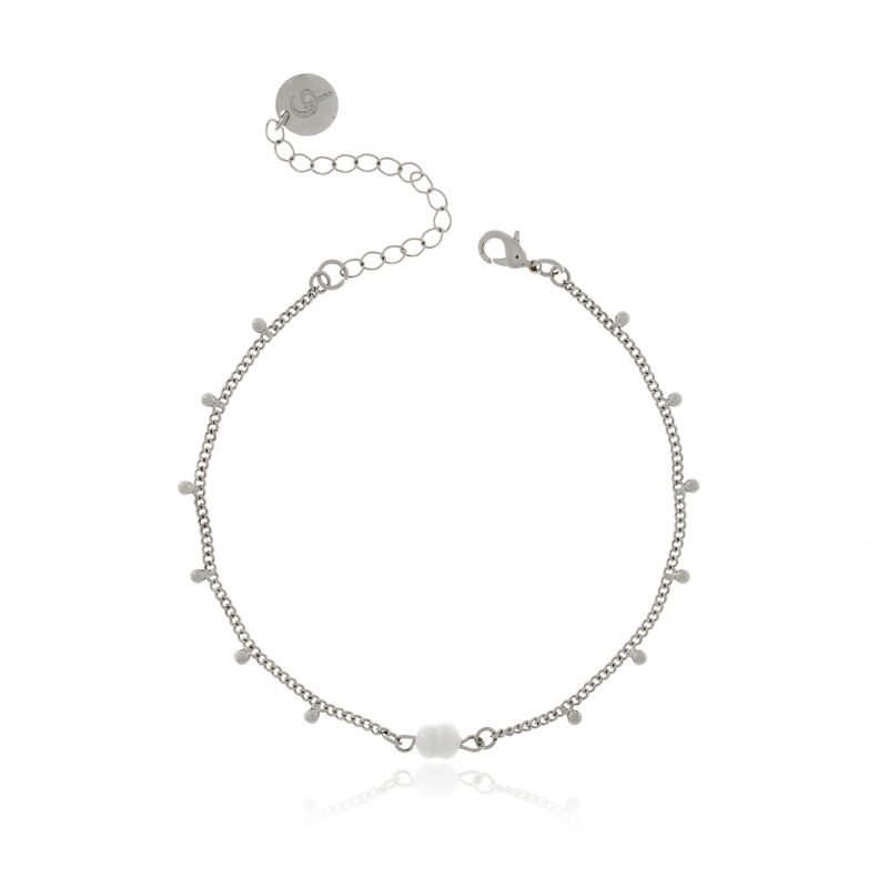 Pulseira Bolinhas Penduradas Pérola Arroz