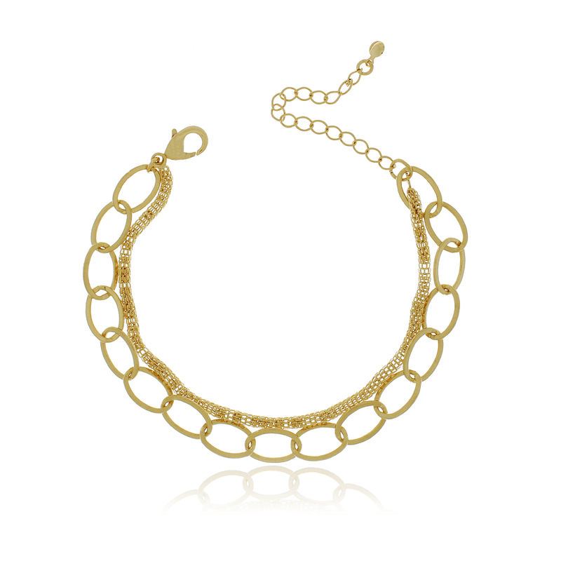 Pulseira Dupla Elos Ovais Malha Furadinha